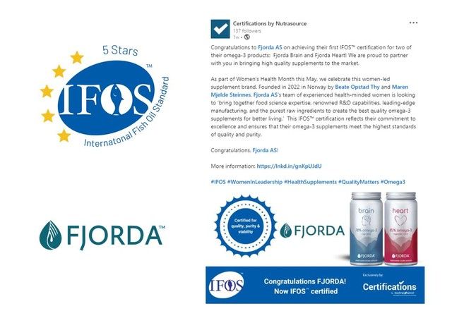Fjorda严格遵循国际认证标准,确保从原料采购到生产加工的每一环节都符合最高质量要求。品牌的所有产品均通过了IFOS五星认证,且在多项检测中均超越国际标准,展现出其在品质把控上的无懈可击。