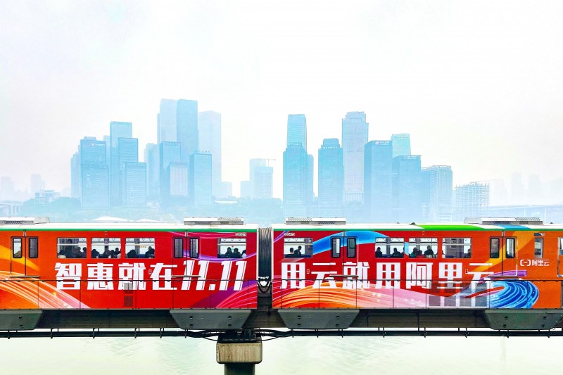 图:2024年11月,阿里云在重庆2号线轻轨投放“双11”广告