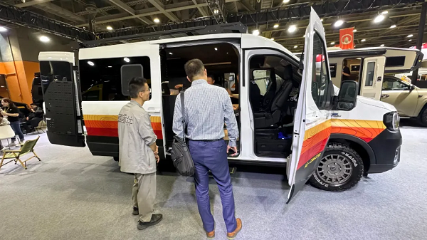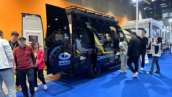 展会现场,戴德房车推出了JMC底盘首款B型车。该车搭载了先进的48V原厂系统,并配备了丰富的越野改装套件,实现了豪华舒适与高性价比的完美融合。独特的设计理念和卓越的性能表现,吸引了众多现场观众驻足围观。车内空间宽敞,生活设施齐全,每一处细节都透露着戴德房车对品质生活的极致追求。