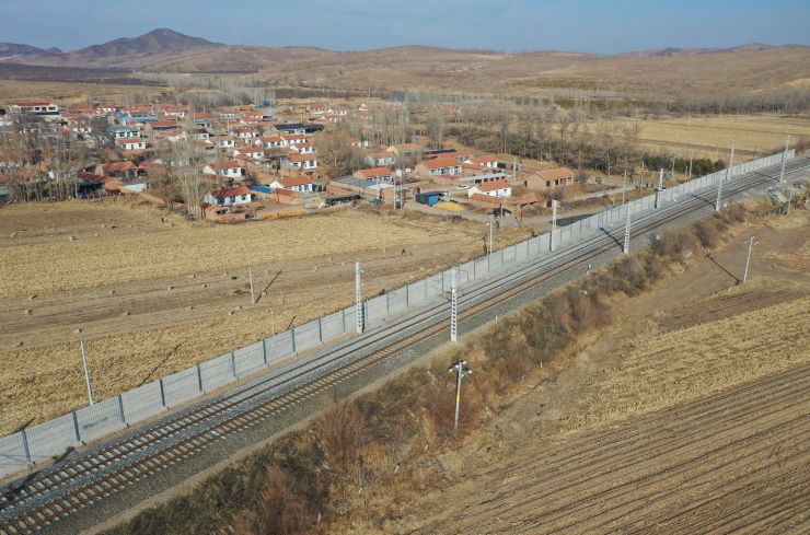 由中国中铁电气化局工业分公司负责施工的集通铁路声屏障工程,不仅便利了沿线群众出行,而且架起了电气化铁路和居民区之间的“隔音墙”“降噪带”,增强了体验感舒适度。