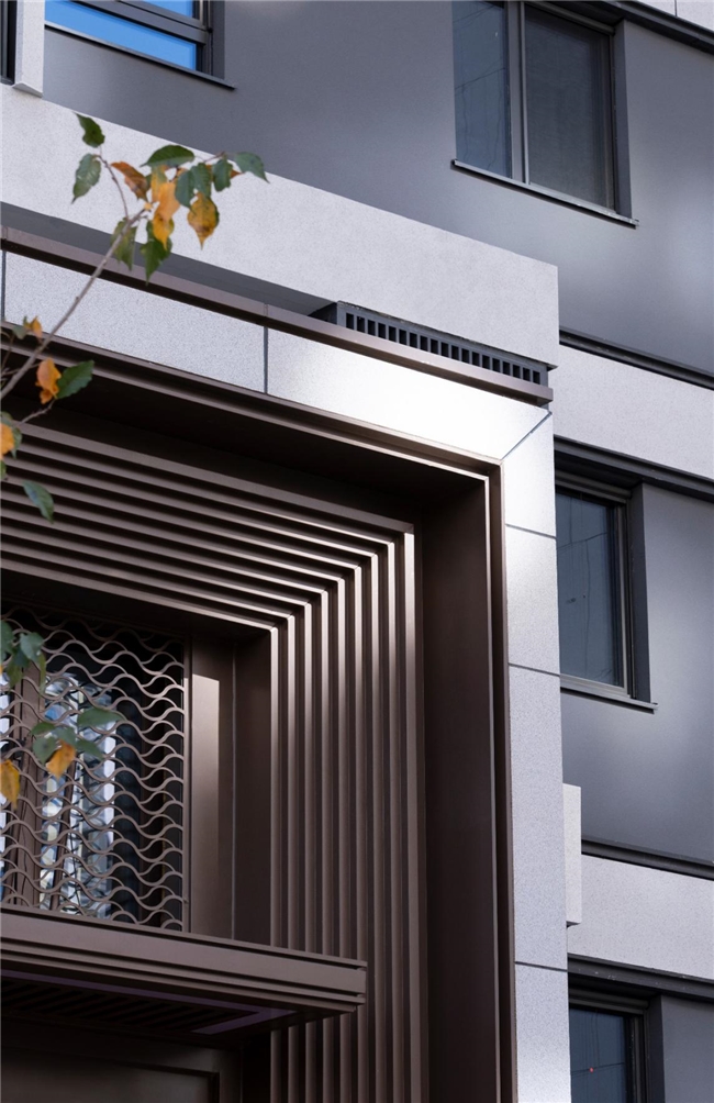 一方面,项目主动提升与丰富静态空间的材质与元素,在西地块大门出入口现状格栅上,增加竖向金属封板,提升金属质感与律动感;在东地块大门两侧增加墙面对景格栅,打造流畅的金属线条,给业主营造隆重的归家仪式感;同时,围墙新增电子围栏,进一步提升安防;此外,还新增智能健身屏、太阳能座椅、自动售卖机、太阳能垃圾桶等,全面提升生活便捷度与环境清洁度;针对建筑外立面,项目将竖向线条材料升级为质感更高、刚性更强、自洁性更好、防风抗震的铝板,颜值与品质双双进阶。