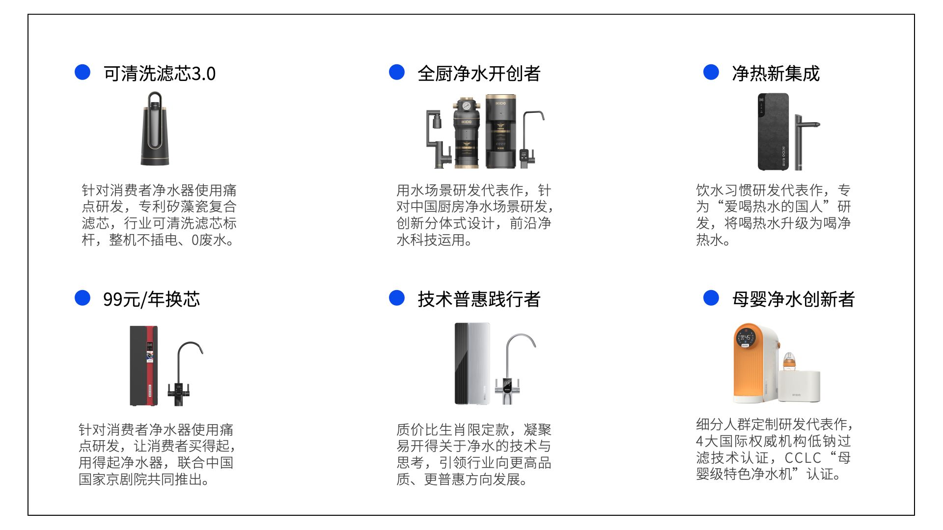 随后,易开得将创新、突破、颠覆等“行业鲶鱼精神”镌刻在发展的每一步中,在净水行业特例独行,成为独树一帜的存在,尤其是集团化发展后的易开得,将重心向更能满足消费者需求、突破行业发展桎梏的技术和产品上倾斜,做出了众多极具独特性、领先性、颠覆性的有效尝试: