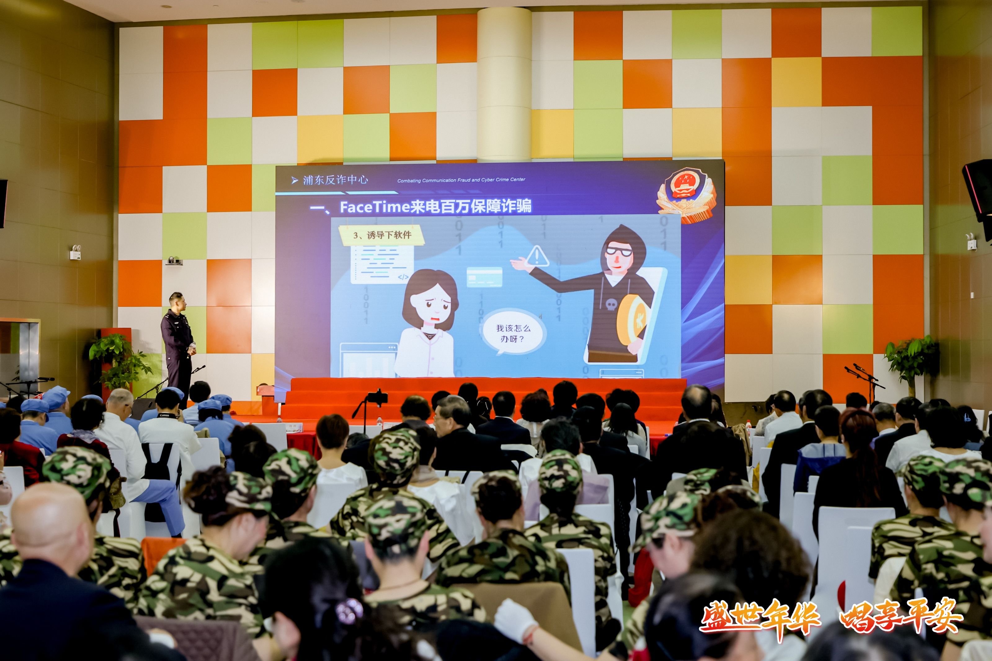 在北京,公安分局的反诈民警亲临颐年艺术节现场,结合真实案例为大家讲解各种诈骗手段与防范措施,告诫群众“理性投资理财、防范非法集资”;同时,现场设置了反诈趣味互动答题环节,并发放宣传手册,帮助颐年朋友扫清金融知识盲区。