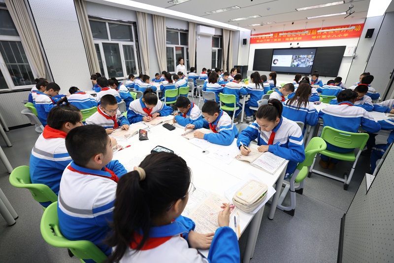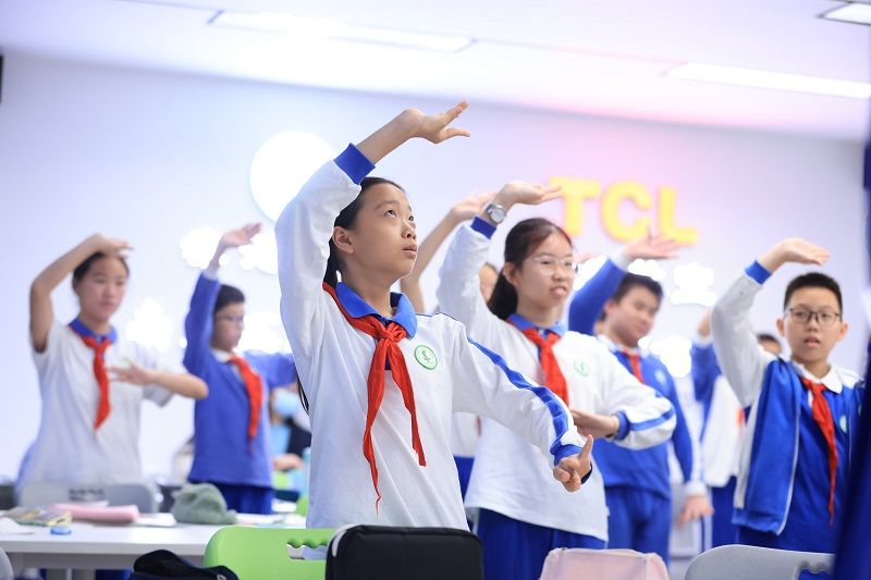 分课堂:赤湾学校、第十八小学、元善镇小学的学生通过TCL智慧教室网络互联同步学习