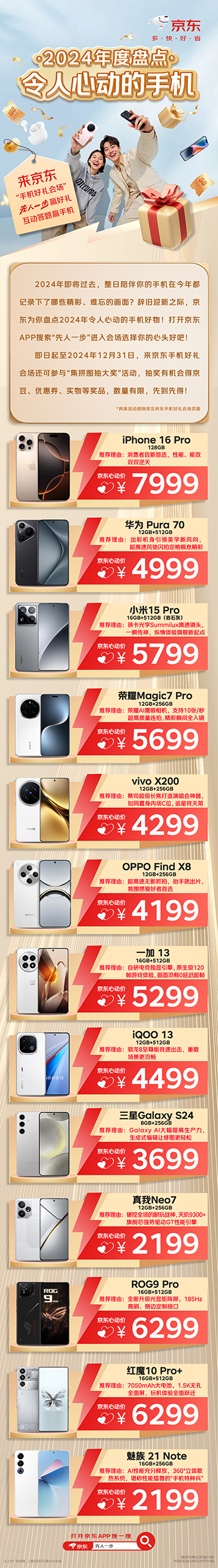 2024年已经接近尾声,如果想在年底送给自己或家人一份礼物,犒劳一年的辛苦付出,不妨选择一款性能优异的手机,实用又饱含心意。为方便消费者挑选出适合自己的手机,京东盘点出了多款2024年令人心动的手机旗舰新品,还携手厂商打造手机好礼会场,带来小米、华为、荣耀、vivo、OPPO、三星等大牌爆款。消费者购机享超值福利与180天只换不修等服务,参与“集拼图 抽大奖”互动答题活动还有机会获得手机、耳机、京豆、优惠券等好礼。下面就来看看有哪些手机产品值得入手吧。