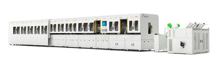 银钢智能近年来在新能源高压线束加工及FAKRA互联网通讯线束加工领域取得了不俗的成果,整线装备以及围绕线束加工的周边配套设备都很成熟。例如10-70平方高压线束磁悬浮智能整线是一条应用于新能源10-70平方高压线束加工的智能化生产线,可以实现自动整圆剥外皮+自动切铝箔+链式屏蔽环压接+旋转CCD检测+自动切编织网+自动翻编织网+残留清理+自动缠胶布+剥内皮+自动端子压接+旋转CCD检测+高压检测+载具升降工站+自动下料带不良品分离等16项+功能,生产线除了采用了银钢在高压线束整线装备应用成熟的模块化设计,CCD视觉检测技术、可视化智能操控系统外,首次采用磁悬浮输送的方式,通用性强,分成多段连接而成,载具采用磁悬浮不间断运送,夹爪夹线后从头到尾不换夹。