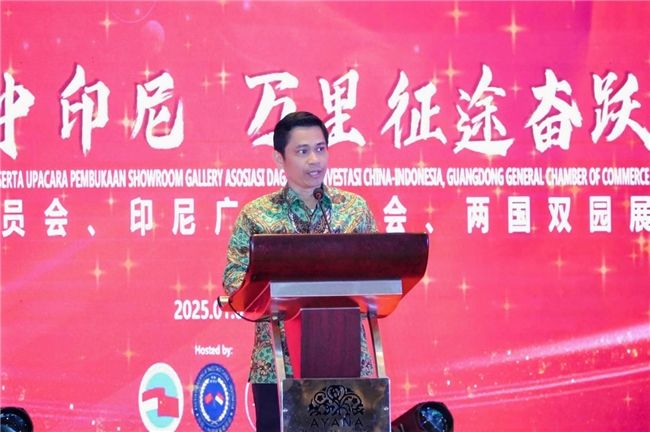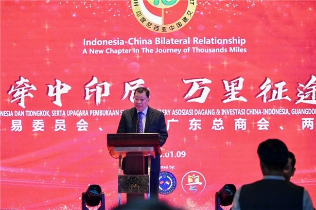 随后,印度尼西亚驻中华人民共和国周浩黎大使在致辞对印尼-中国贸易委员会、印尼广东总商会、两国双园展厅开馆典礼表达了祝贺,强调了两国在投资和贸易领域合作的持续加深以及人文交流领域的积极进展,希望未来进一步深化合作,为两国友好及经济发展做出贡献。