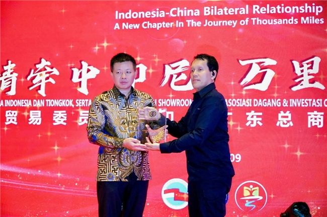 致辞环节结束后,备受瞩目的授牌仪式隆重举行。印尼-中国经济、社会与文化合作协会苏德嘉主席授予印尼广东总商会、万信达集团陈日铃会长“副总主席”牌匾,印尼中国贸易委员会主席JOSUA H. NAPITUPULU授予陈日铃会长“印尼中国贸易委员会顾问团总主席”牌匾,以表彰陈日铃会长在促进中印尼友好商贸往来中所做出的卓越贡献。