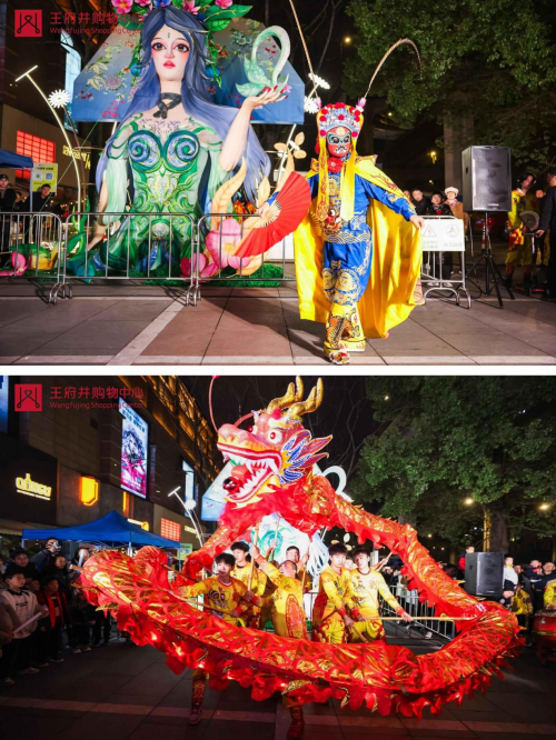 在全国各地,王府井集团旗下门店纷纷推出特色活动:成都王府井购物中心倾力打造“大美东方,井绣奇观”首届新年灯会,以《鸾凤和鸣》《龙盘秀地》《牡丹花门》等六大主题灯区点亮城市夜空,国风表演、灯会集市、汉服巡游轮番上演;