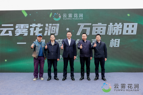 启动仪式上,国隆集团董事长刘锋、总经理李天宁,重庆璧山区八塘镇党委书记金灿,安正城乡重庆平台总经理袁兵,亦念亦忘品牌创始人江永亭,为云雾花涧万亩梯田一期亮相仪式“启幕”。