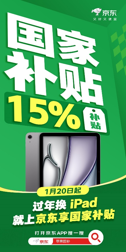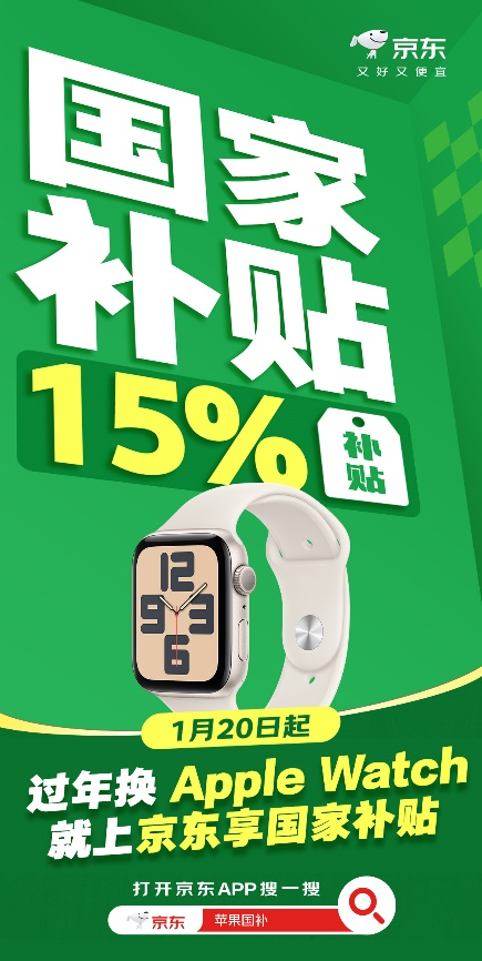 1月20日,国家补贴再加码,手机等数码产品购新补贴落地京东,京东也正式上线了“苹果国家补贴”会场。消费者在京东购买单件价格不超过6000元的iPhone、iPad、Apple Watch、AirPods、苹果配件等Apple产品,即可享受政府15%的补贴,每件补贴不超过500元。只需打开京东APP搜索“苹果国补”,即可一键直达活动页面,省钱省心地将心仪的 Apple 产品带回家。