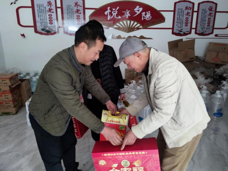 支委成员为退休老职工献上慰问品(摄影:刘金勇)