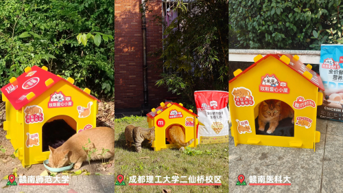 岁末寒潮侵袭,高校即将放假,玫斯团队紧急行动。从设计图纸开始,精心挑选耐用板材,反复调试打样,快速投入批量生产,再到为小屋装饰美化、打包送出,一气呵成。短短时间内,3800 斤玫斯猫粮、500 余个防风防雨且铺着毛绒垫的爱心猫窝,被精准送达 150 多所高校,惠及 9500 余只流浪猫咪。这些猫窝不仅实用,配色根据猫咪视觉喜好选择了经典红黄配色,外观还能 DIY,让每一只流浪猫都有了专属温馨小窝,熬过寒冬。