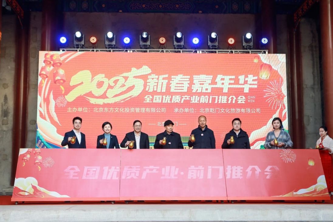 1月20日,前门“plus”2025新春嘉年华系列活动之“全国优质产业前门推介会”在前门大街广和查楼举办。来自“中国枸杞之乡”宁夏中宁的国家级非遗项目黄羊钱鞭和枸杞蒿子面,以及“中国第一水乡”周庄古镇的大型文旅演艺项目《只此周庄》,在前门精彩亮相。来自江苏、上海、宁夏、深圳、山西、河北等全国各省市20余个的特色产业和文旅项目来京交流和推介。本次活动由北京东方文化投资管理有限公司、北京乾门文化旅游有限公司联合主办。活动以“文旅推介+品牌宣发+新春大集”为核心,旨在为全国的优秀文旅项目和产业产品搭建合作交流平台,希望全国更多的优质产业与北京最负盛名的老字号商业街区--前门大街相互赋能,实现1+1>2的目标。