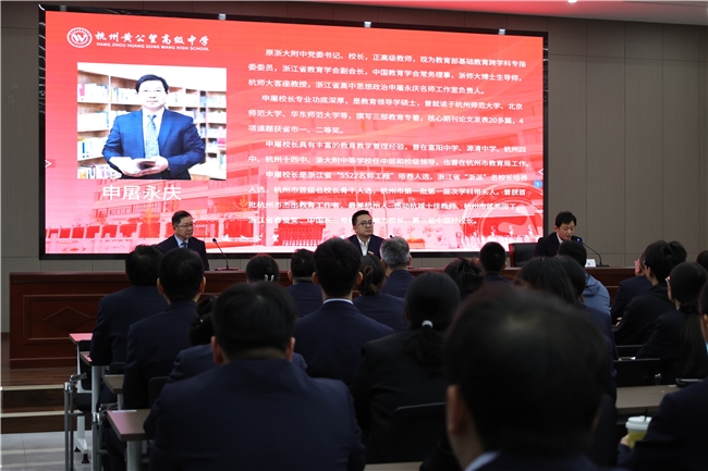 随后,申屠校长发表就职讲话。他表示,很感谢董事会的信任,也感谢前任们做出的贡献,黄公望高级中学是一所特色鲜明的学校,有良好的基础,站在新的起点,根据时代发展新特点和教育发展新要求,学校要守正创新,一方面要守教育的正,回归教育初心,真做教育,做真教育,使公望教育启于原点、知行合一、众望所归;另一方面要创教育的新,以学生发展为本,重构育人体系,探索公望教育新模式,使公望教育立足杭州、辐射全国、走向世界。他说,作为教育乡贤,很高兴能为家乡教育做点贡献,接下来将在名师引进和打造、课程建设和实施、学生学习和发展、公望教育和品牌等方面进行全面规划。申屠校长还表示,办学是有规律的,学生成长也是一个静待花开的过程,不能鲁莽过激,但需只争朝夕。