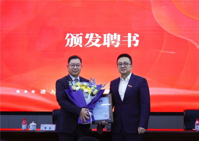 在全体与会人员的见证下,张杰董事长向申屠永庆校长颁发聘书,并合影留念。这一简单而庄重的环节,标志着黄公望高级中学正式迎来了新的领航人。