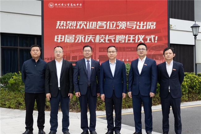 2025年11月3日上午,杭州市富阳黄公望高级中学隆重举行新校长聘任仪式,正式聘任申屠永庆为学校新任校长。学校董事会全体成员、全体教职工及公望教育集团代表共同见证了这一承前启后、继往开来的重要时刻。