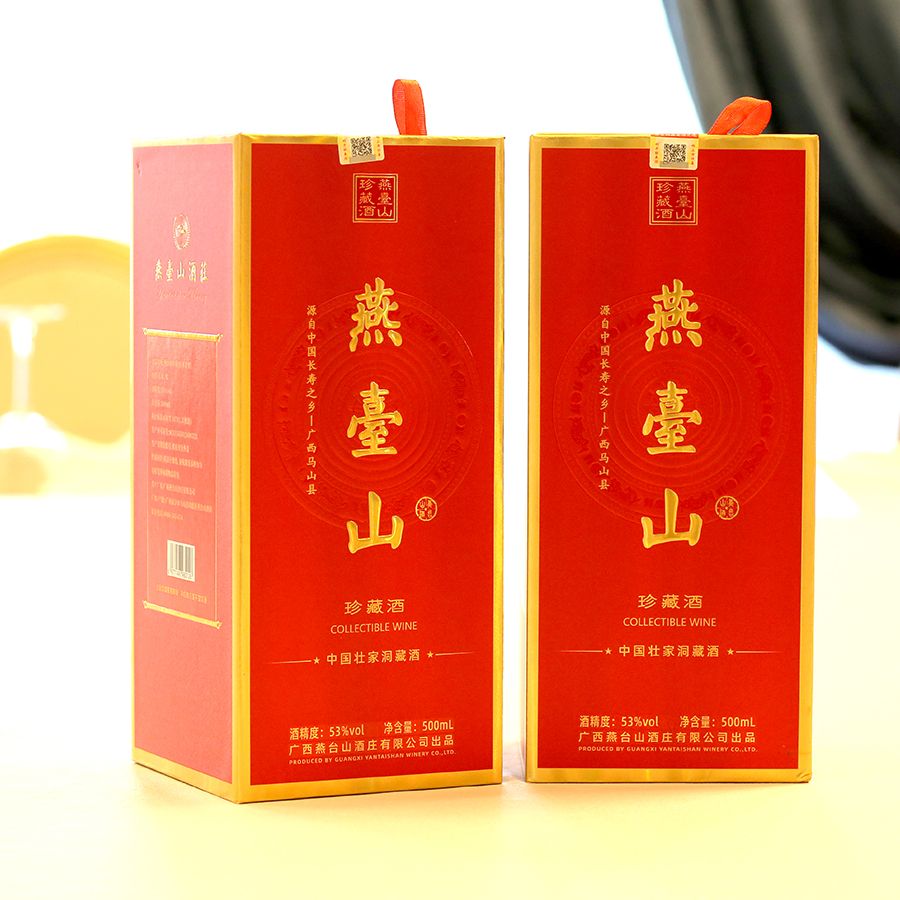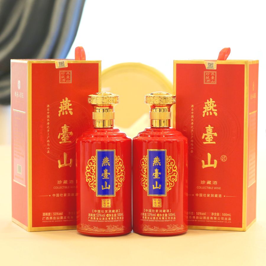 酿造工艺上,该酒严格遵循非物质文化遗产“燕台山壮家白酒酿造技艺”,经多道工序酿制后,送入燕台山酒庄天然溶洞进行长年洞藏陈化。恒温恒湿的溶洞环境使酒体辛辣味与不良气味逐渐消减,最终形成专家团盛赞的“香气典雅、绵甜爽净”的洞藏风味,每一瓶428元的珍藏酒都是时光与工艺淬炼的品质结晶。