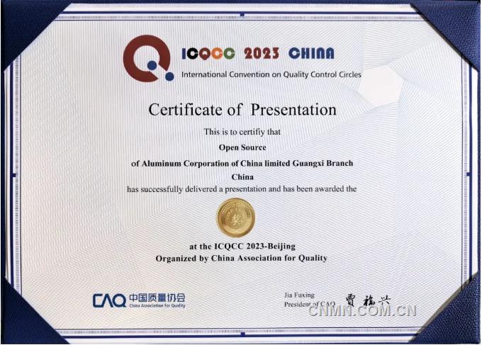 其中,中铝股份广西分公司风帆QC小组成果“降低平盘蒸汽消耗量”和开源QC小组成果“降低3号浓密机排泥设备故障次数”荣获英文组金奖,广西华银铝业视网膜QC小组成果“减少赤泥压滤机电控系统故障率”荣获中文组金奖。