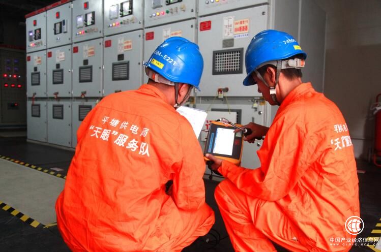 南方电网“天眼供电服务队”运用局部放电测试仪对“天眼”专用变电站开展检测。